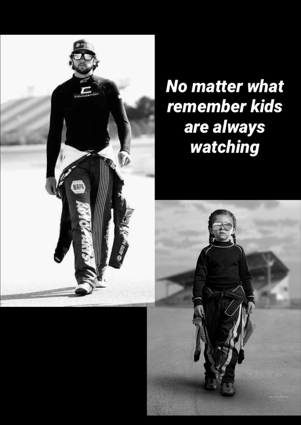 The recreation turned out amazing thanks to Hale Hughes Photography. After that Steven made a picture that had both Chase’s picture and RJo’s together and added the caption “No matter what remember kids are always watching” and posted it to Facebook. Well it got shared quite a bit and got to Chase Elliott himself.