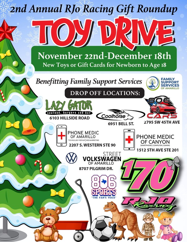 RJo is kicking off her 2nd annual RJo Racing Goft Roundup. This year her toy drive will benefit Family Support Services.