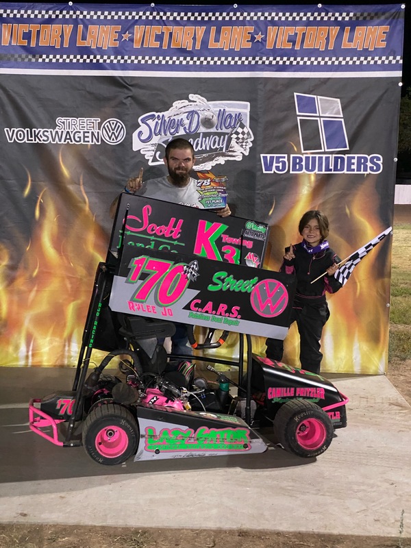 For the main RJo had some work today as she would start last. Dad made some changes because we were missing the best crew chief in the business Braden White. Rylee would quickly make her was to second place after the green dropped and have a great race between her and Matthew but with a few laps to go she finally got underneath him and last him coming away woth back to back a main wins and 3 mains on the season.