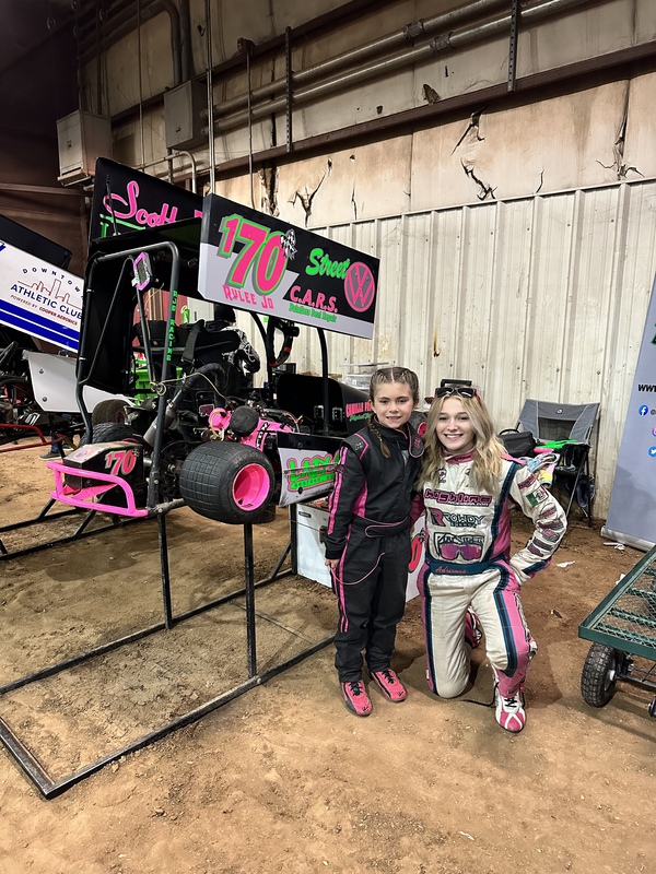 Rylee drew a 43 which would have her starting outside pole in her first heat on Thursday. She was a little nervous about this track as it was a lot different then she was use to. She got one set of hot laps which was only two laps so not alot of time to get comfortable on track. I’m the heat race she was running ok and went into turn three and a car behind her drove into her and shoved her into the wall. It bent the tail tank over and was hitting the exhaust making a clanking noise and she thought something was wrong so she pulled to the infield and that ended our day.