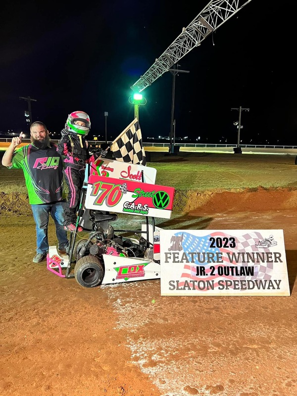 Saturday night we traveled down to Slaton Speedway and RJo would have an awesome night!!! Started pole of first heat and would lead every lap coming away with the win!!! Second heat started outside front row and again would lead every lap winning her second heat of the night. That would put her on the pole for the main and she came away with her second win of the season!!!!