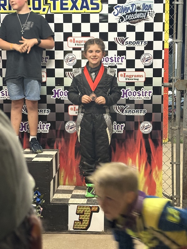 With her finishes in the heat races she would start outside pole of the main. We made some changes during intermission and the kart was much better. We are still searching for a little more speed but RJo was able to get her first podium finish of the season and come home third.