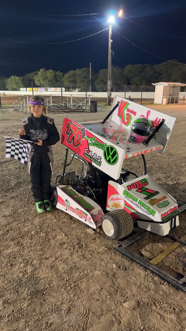 The main started third again and found our way to second when the caution came out was able to get a good restart and pass the leader coming home with the A-Main win tonight for my third win of the season and my second win at Amarillo’s Silver Dollar Speedway this year!!!! Blevins Custom Creations that new hat sure looks good in victory lane!!!
