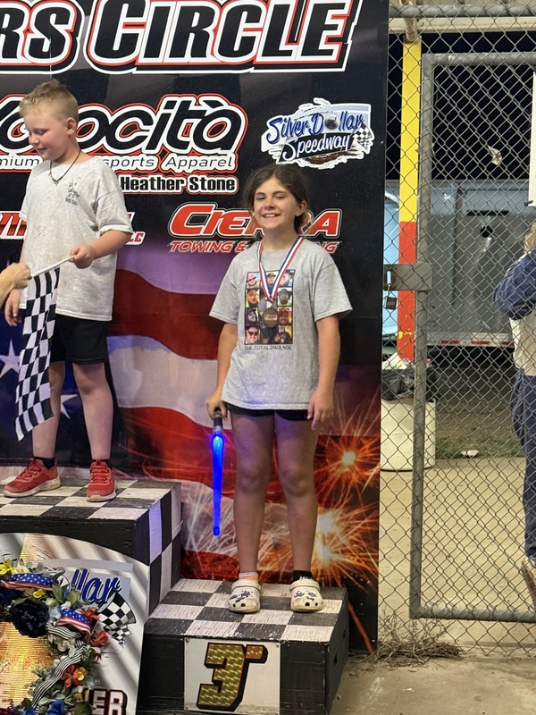 For the main we would start pole again!! At the start of the race we would get a good start and lead some laps but fall back to second when Kam Parsley got a good run out of turn four. Rylee wouldn’t give up tho and was driving hard when she would get a run and look low coming out of turn four and spin out. She would go to the back with about 3 laps to go but she would drive it back up to finish 3rd.