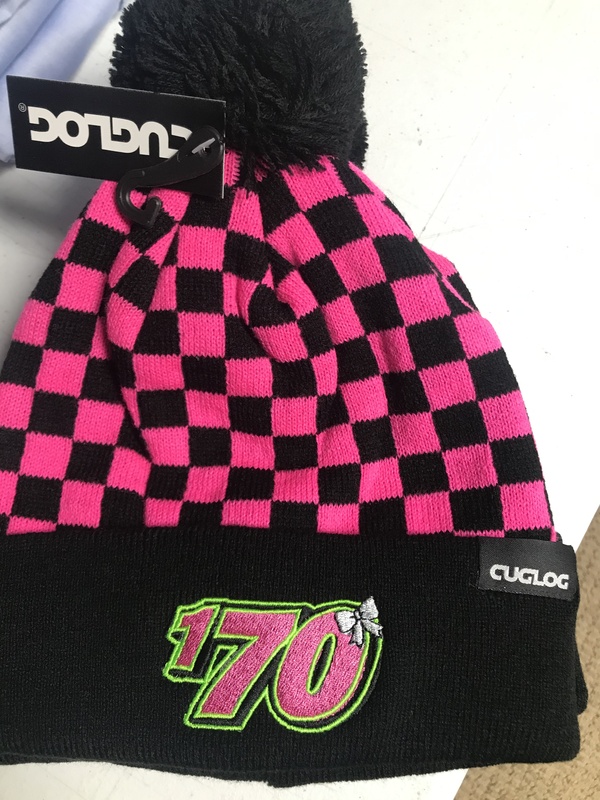 170 pink checkered beanie